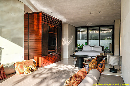 친환경적인 설계 철학을 바탕으로, 오픈형 구조와 현대적인 인테리어에 자연 요소와 발리 전통 감성을 더했습니다. 목재, 물, 석재, 라탄 소재가 조화를 이루며 편안하고 세련된 분위기를 완성합니다.